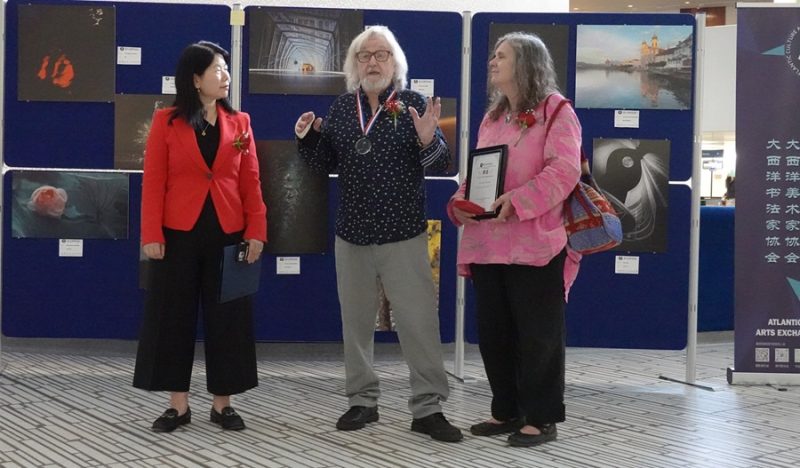 国际艺术和艺术家联合会(IFAA)主席 、 加拿大著名艺术家迈克尔 · 简森(Michael Janzen)在开幕式上获颁大西洋文化艺术交流协会十周年特别功勋勋章和受邀为大西洋美术家协会顾问 。 他在答谢辞中说:“ 在全球化时代,文化交流比以往任何时候都更重要 。 摄影是世界性的语言,它让人与人之间的理解与友谊得以延伸 。”