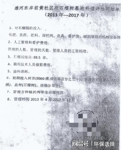2013年春季,安徽淮北市相山区曲阳街道办事处为绿化萧濉新河河堤,规划打造约350亩软子石榴基地。其中,88.5亩河滩地划拨给当地居民张某峰栽种,剩余200多亩划拨给其他居民零散种植。