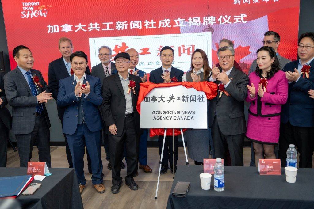 出海中心为加拿大共工新闻社举行成立揭牌仪式。加拿大共工社 发