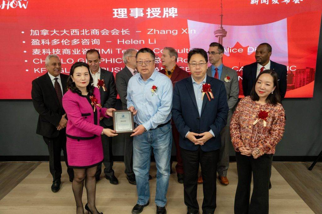 发布会期间还举行了理事证书颁发仪式。加中企业出海服务中心新增五位理事,分别是:非洲国际贸易大使王大伟(Louis Claude Hermann Mefire)、加拿大大西北商会会长Zhang Xin、盈科多伦多咨询负责人Helen Li、麦科技商业咨询负责人Alice Ding,以及CHEELO GRAPHICS INC.总裁Roger。