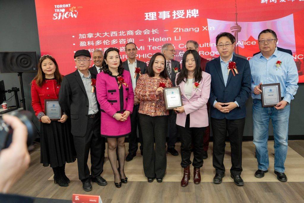 加中企业出海服务中心首席顾问、加中地产投资总商会会长孙志峰,加中企业出海服务中心秘书长Tinna Xu等祝贺加拿大共工新